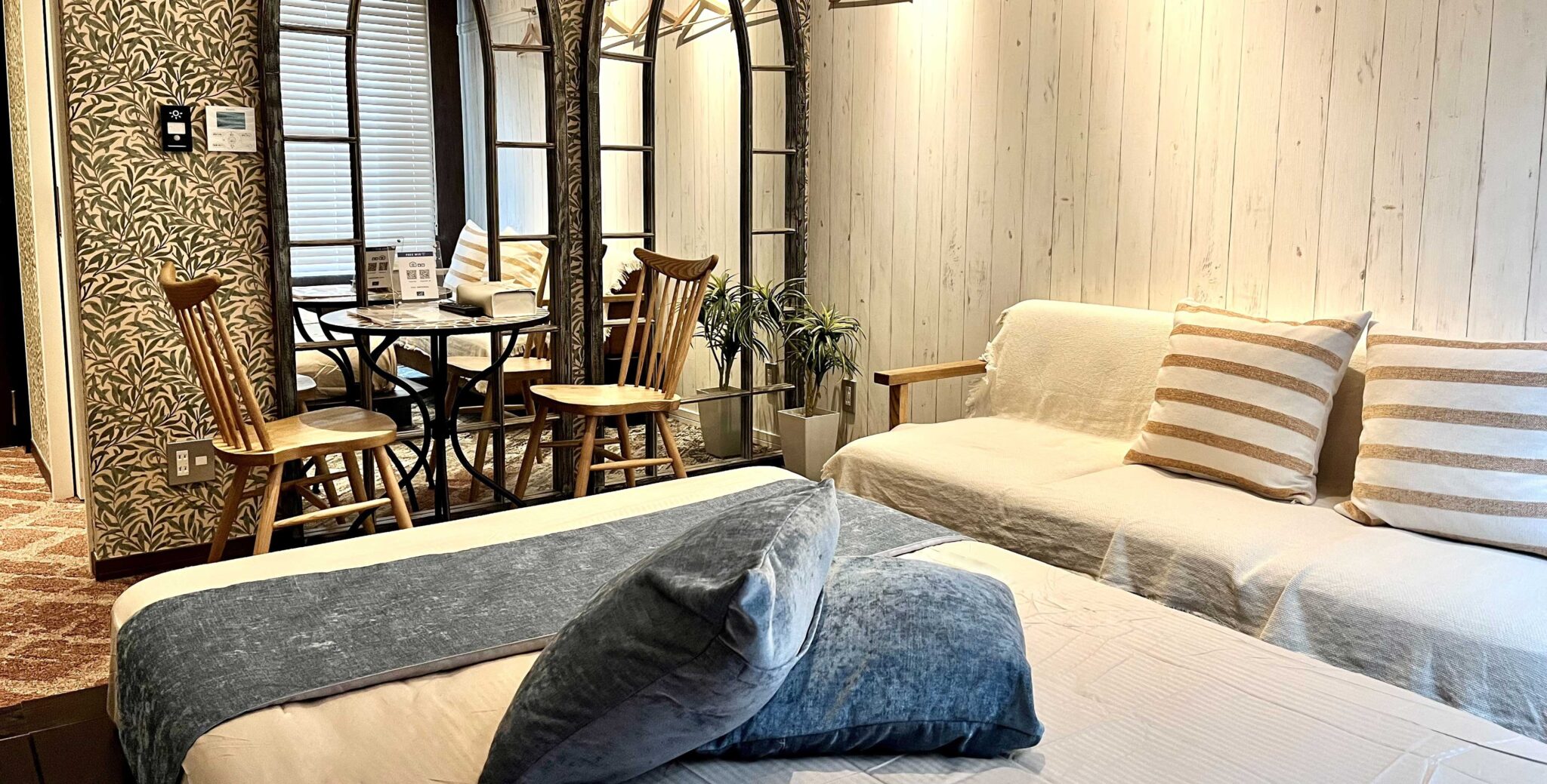 ダブルベッド×2、ソファベッド×1